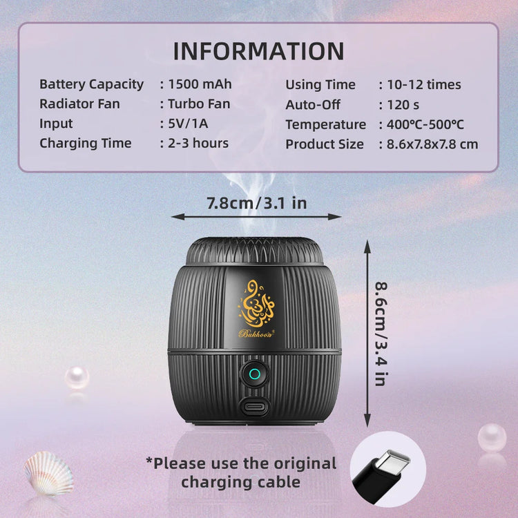 Experience the calming fragrance of bakhoor and OUD on the go with the Mini Electric Incense Burner, a compact, USB-rechargeable diffuser perfect for cars, offices, or travel. Its sleek design delivers a safe, flame-free aroma experience, filling your space with rich scents wherever you are. Small yet powerful, this burner brings relaxation and elegance into any environment without the hassle of traditional incense.
